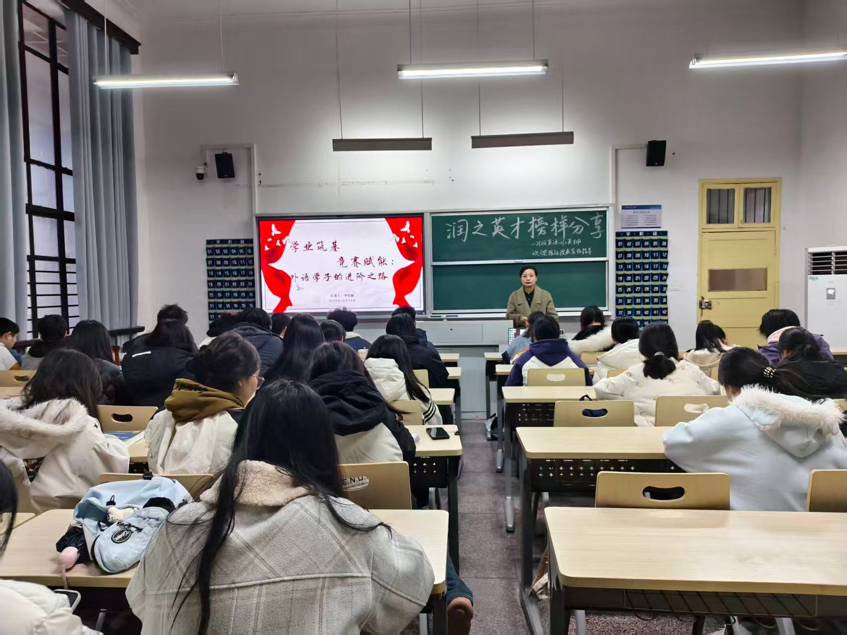 为充分发挥优秀学子的榜样引领作用,帮助大一学生明确学业目标、合理规划大学生活,2025年12月24日下午,萝莉岛 在城南校区举办“润之英才榜样分享”会。萝莉岛 陈钰副院长莅临现场,与同学们共同交流。本次分享会特邀2024级英语润之班优秀学生李恬丽担任主讲,面向2025级英语润之英才班全体学生。活动围绕学术论文写作、大学生创新创业训练计划(“大创”)项目、学科竞赛及短视频实践等主题展开,内容详实、贴近实际,现场交流互动热烈,同学们纷纷表示受益匪浅。