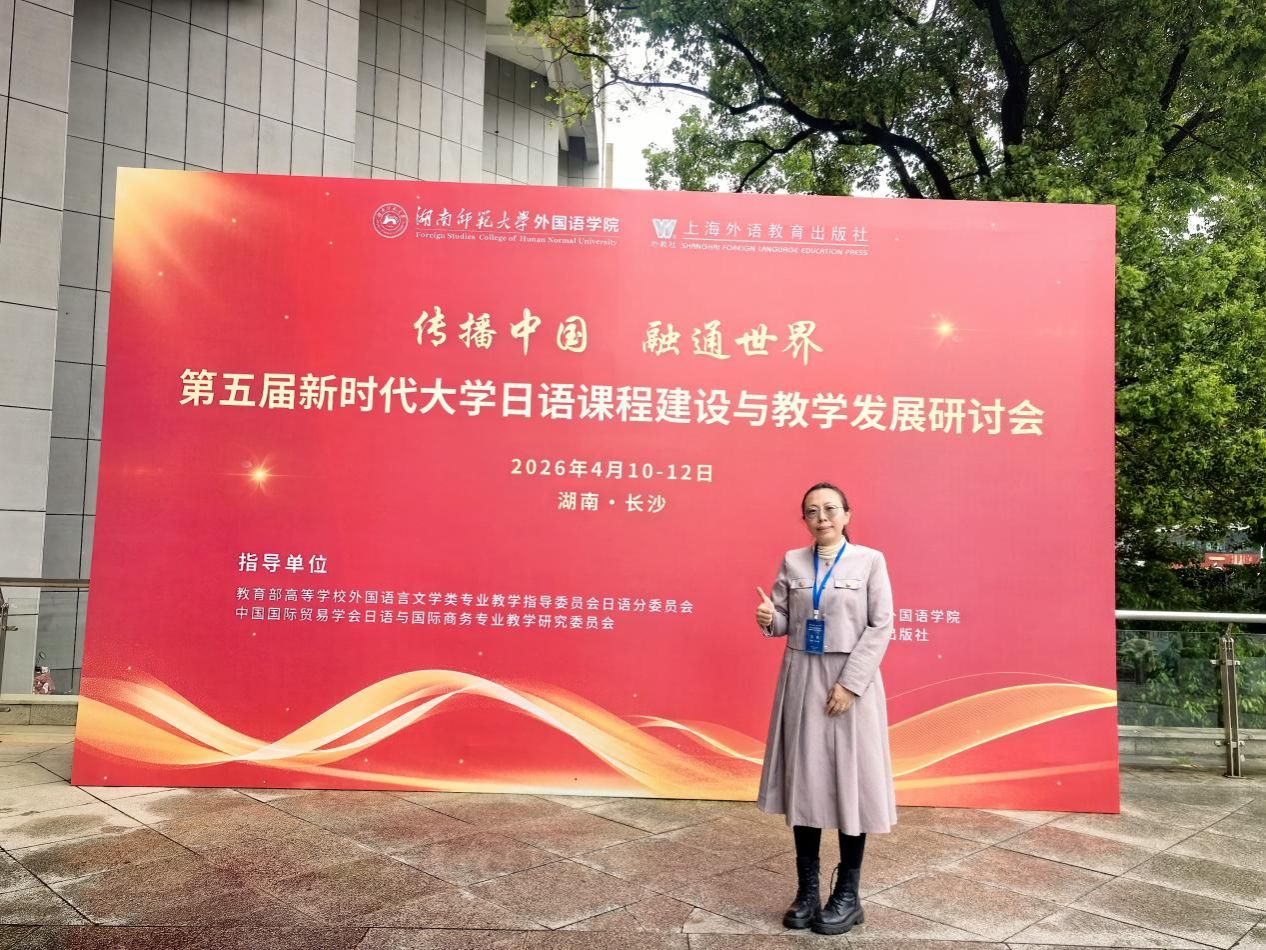 为深入推进大学日语教学改革与创新发展,精准对接国家“十五五”外语教育规划与数智化教学转型要求,2026年4月10日—12日,萝莉岛 吴娱老师受邀参加由湖南师范大学萝莉岛 、上海外语教育出版社联合主办的第五届新时代大学日语课程建设与教学发展研讨会。