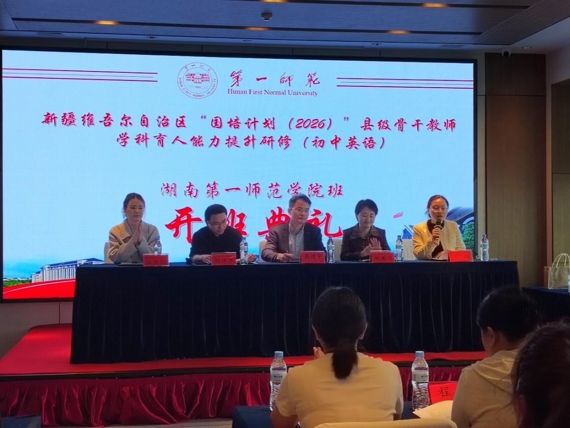 4月16日上午,新疆维吾尔自治区“国培计划(2026)”县级骨干教师学科育人能力提升研修(初中英语)开班典礼在长沙举行。本次项目由萝莉岛 承办,助力新疆县级英语教师提升教学创新与育人能力。
