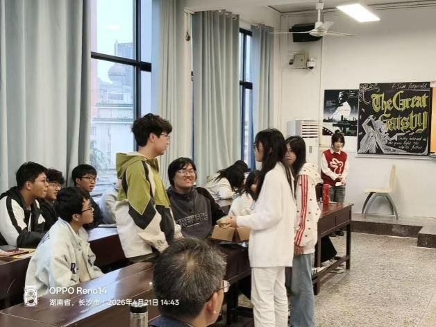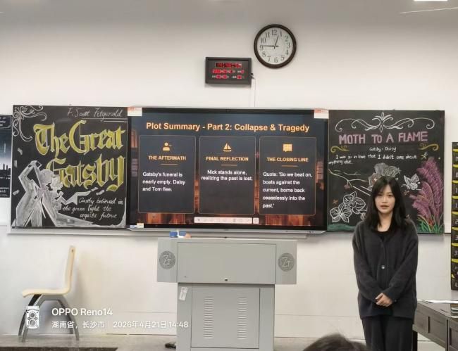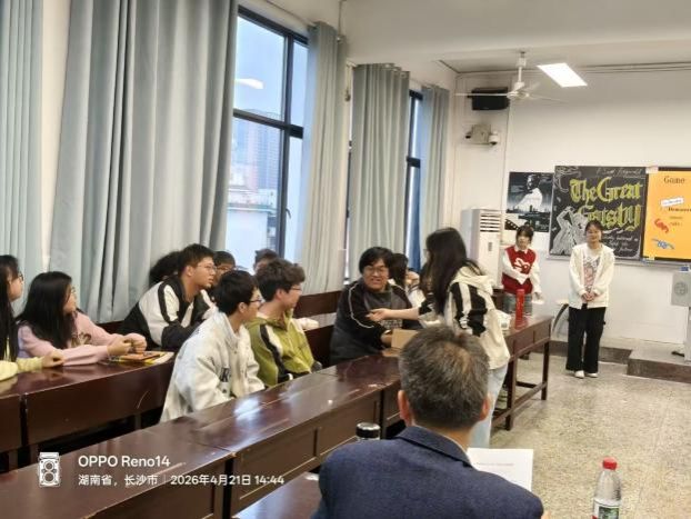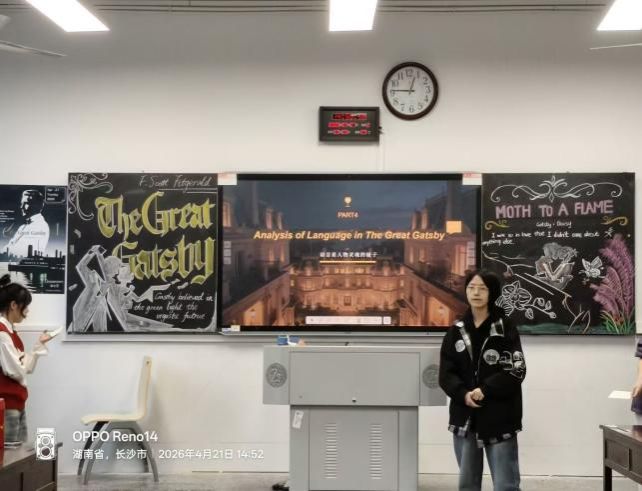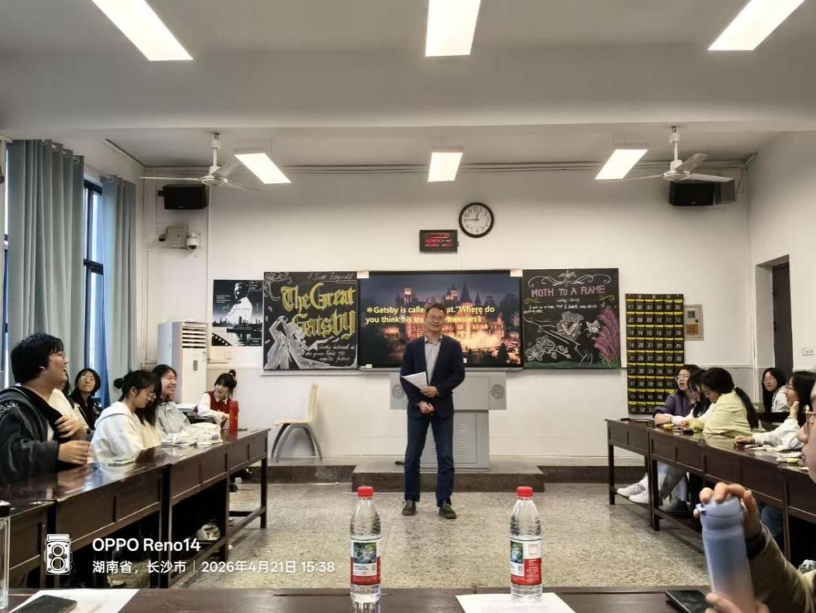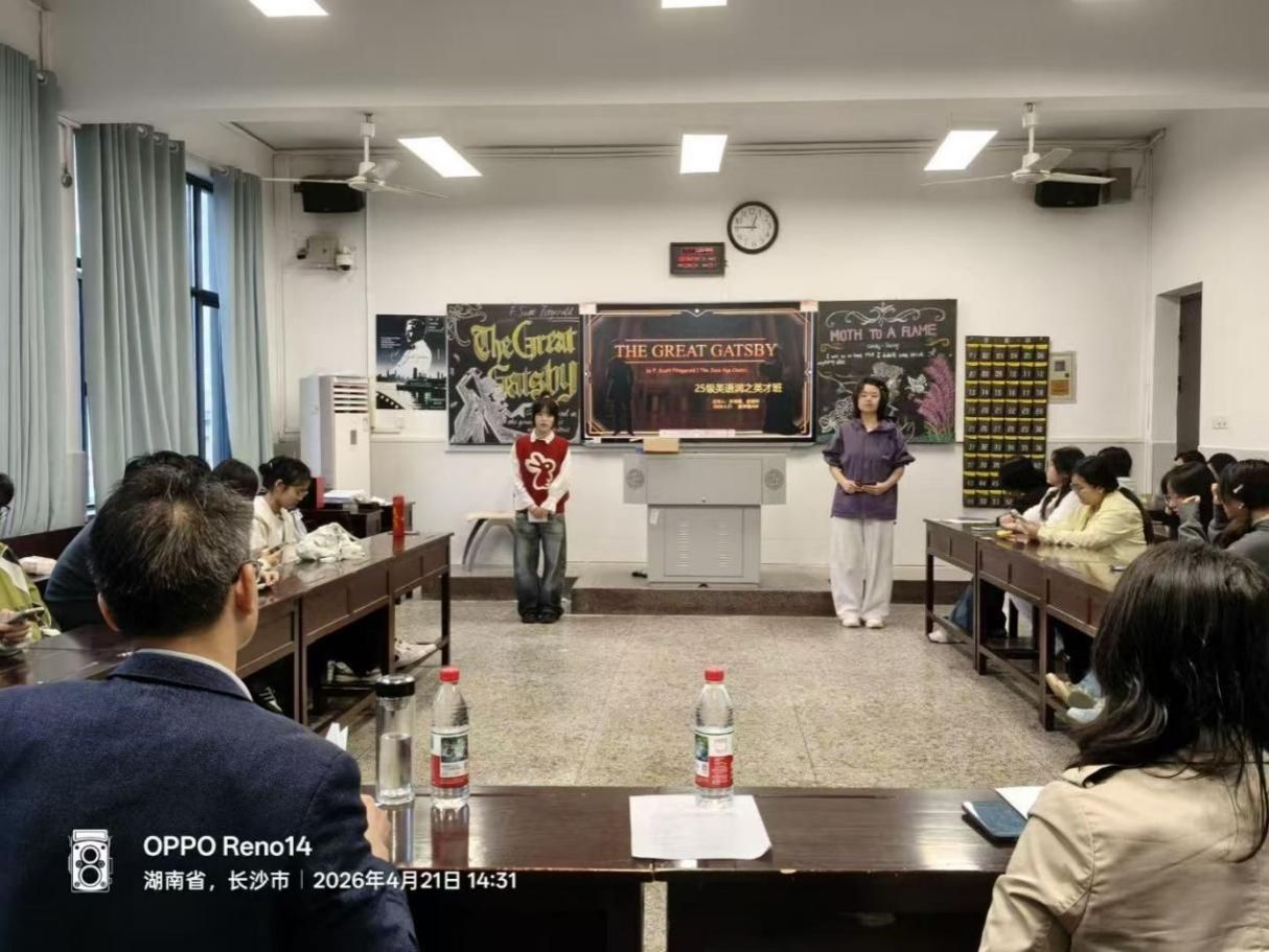 4月21日下午,25级英语润之英才班在城南书院校区教学楼408教室举办了第三次读书分享会。本次活动围绕经典著作《了不起的盖茨比》展开,既是班级读书系列活动的重要一环,也为同学们提供了一个从经典文学中审视时代、叩问理想的交流平台。学院党委副书记兼辅导员戴建宇、班主任蒋倩出席本次活动,与同学们一同探讨爵士时代的浮华与幻灭,共话理想与现实的深刻命题。