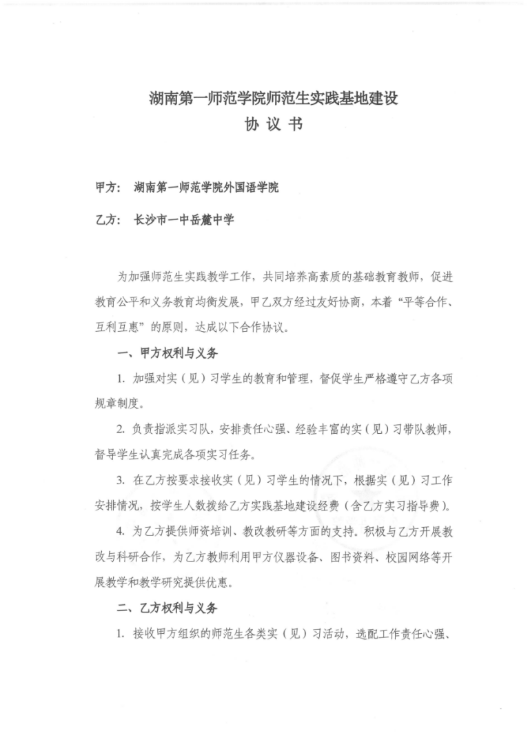 3月26日,萝莉岛 与长沙市一中岳麓中学举行实践基地共建签约仪式。萝莉岛 唐文杰副院长、教务办主任廖爱秀、英语系主任张昀霓,长沙市一中岳麓中学郭胜书记、姜尚校长、刘英副校长等共同出席了签约仪式。