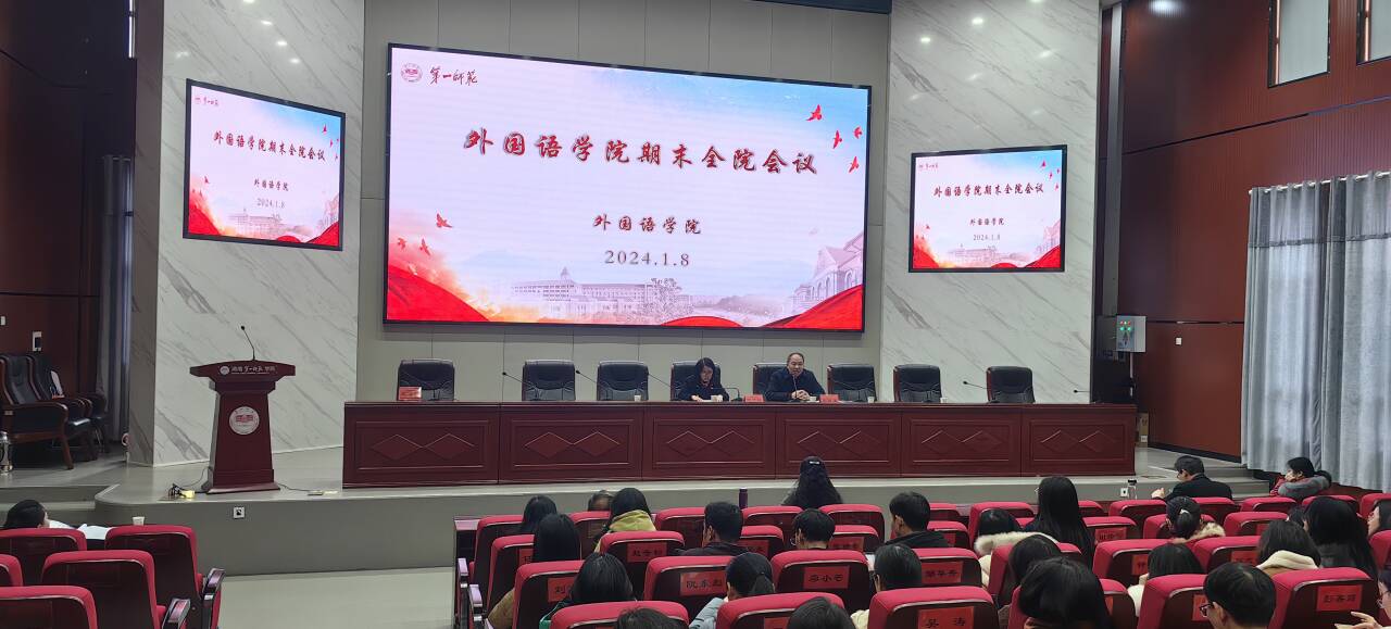 陈圣白院长在会议总结中提到:下学期要重点关注省级一流专业的验收工作,其中翻译专业面临的巨大压力与挑战,翻译系要提前谋划专业内涵建设。寒假即将到来,希望学院老师们利用寒假时间完成相应的科研和教学工作,特别是博士和教授要起到引领作用,带领学院各个层面的教学和科研团队,形成团队合力,奋力前行,争取相关核心成果的突破。