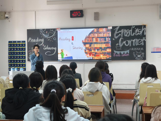 10月29日下午,萝莉岛 城南校区读书沙龙活动在图书馆301顺利举行。出席本次活动的嘉宾有院党委副书记戴建宇、副院长王佳娣、副院长陈艳君、学工办主任刘洁、“润之英才班”班主任周敏、学业导师蔡军、学业导师范晓露、任课教师王晓等。24级英语“润之英才班”全体学子及各位英语爱好者共同参加了此次活动。
