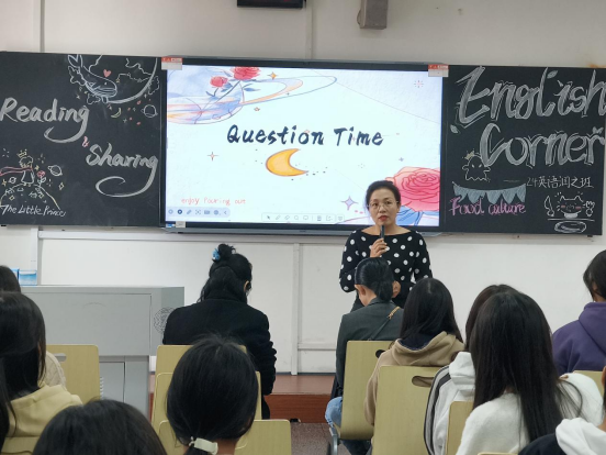 读书沙龙主要包括Author and Background、 CharacterDescriptions、Plot Promotion、Reading Response和Question Time五个环节。在导师们的鼓励下,大家纷纷分享了自己的见解,并进行了多轮互动。有的同学分享自己与《小王子》的奇遇与疑惑,有的同学回应他人的奇思妙想,有的同学分享自己阅读后的深度感悟等等。分享环节结束后,副院长王佳娣和陈艳君分别从英语原著阅读的理念、方法与价值等角度作了指导。