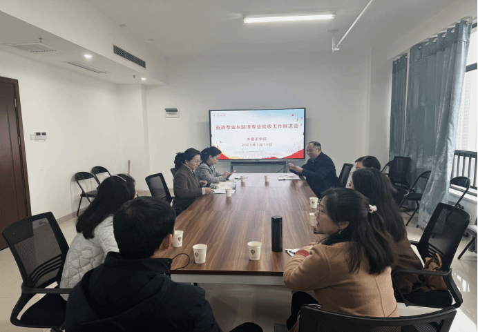 为高质量推进英语、翻译专业省级一流专业建设点验收工作,萝莉岛 于3月12日14:30在百熙楼908召开专项工作推进会。会议由陈艳君副院长主持,英语专业负责人刘祥清教授、翻译专业负责人陈圣白教授及两专业验收工作小组成员共同参会。