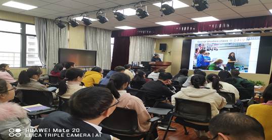 2019年11月19日下午,萝莉岛 在怀中北605举行了对外汉语教学讲座,何俊平老师为学生们开讲。讲座由翻译教研室主任陈钰副教授主持。