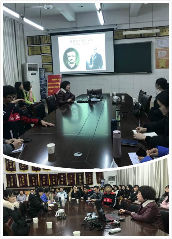 12月25日下午,萝莉岛 王春晖副教授在怀中北206院会议室举行了一场面向学生的经典导读活动。讲座题目为:美国浪漫主义作家爱伦·坡及其诗歌之美。外院部分老师及学生代表参加了此次讲座。