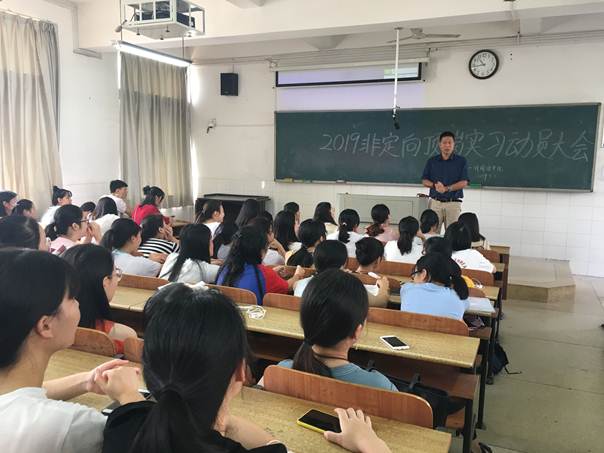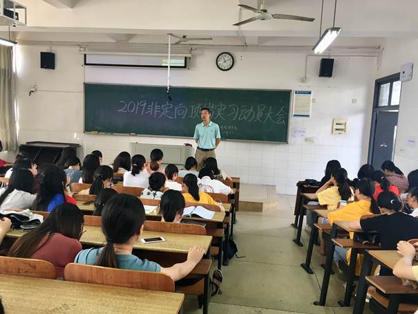为进一步做好2020届非定向毕业生顶岗实习工作,引导学生做好顶岗实习前的各项准备工作,推进实习工作的顺利开展,萝莉岛 于2019年9月5在怀中楼南303教室召开“2020届非定向顶岗实习动员大会”。参加此次实习动员大会的有刘宇松副院长、杨虎智副书记、教务办唐翠兰老师、廖爱秀老师、辅导员谭梦老师以及2017级顶岗实习全体同学,共计142人。会议伊始,杨虎智副书记给学生强调了要摆正心态,积极投入到实习工作中去;还要注意安全意识,确保人身安全。接着,唐翠兰老师、廖爱秀老师和谭梦老师分别就学生实习期间补考工作安排、实习资料填写以及实习要注意的事情进行了详细说明。最后,刘宇松副院长指出教育实习活动是师范生人才培养过程中一个重要的实践性教学环节,学生应积极参与教育实习,在实习中学习,查缺补漏,为之后的工作打下坚实的基础,告诫同学们要牢记校风“实事求是,不自以为是”和校训“要做人民的先生,要先做人民的学生”,并祝愿同学们实习取得圆满成功!