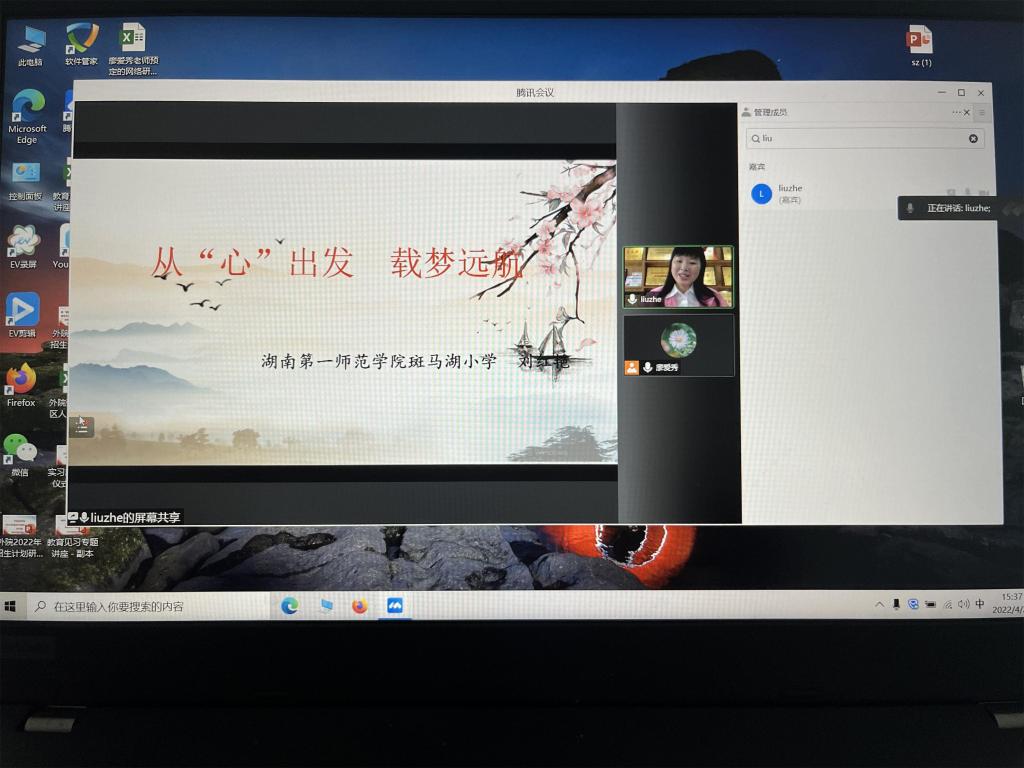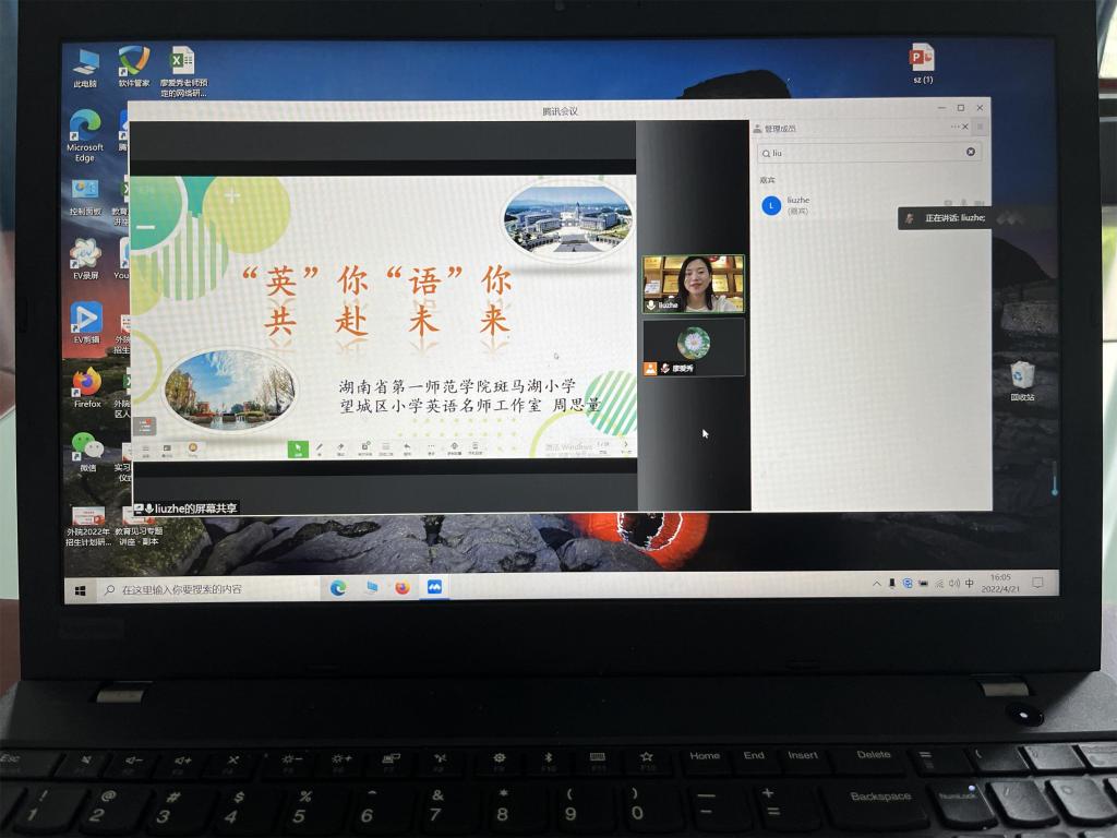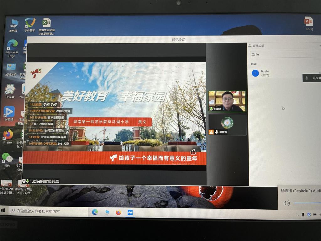 根据省教育厅和长沙市疫情防控的相关要求,本学期教育见习在校内进行。萝莉岛 刘明东中、小学英语导师工作坊利用工作坊专家资源库邀请一线优秀小学校长、教师利用腾讯会议平台为参加本次见习的学生开展线上讲座。萝莉岛 21级874-877英语班、20英语1-4班、20级840-843英语班、19英语1-4班全体学生及见习指导教师参加。