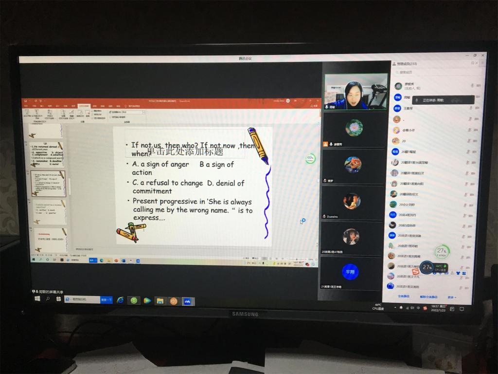 2022年1月23日下午,萝莉岛 举行了英语专业四级考试备考线上动员大会。萝莉岛 刘宇松副院长、系主任张昀霓、教务办廖爱秀老师以及2020级全体学生和21级学委参加了本次动员大会。