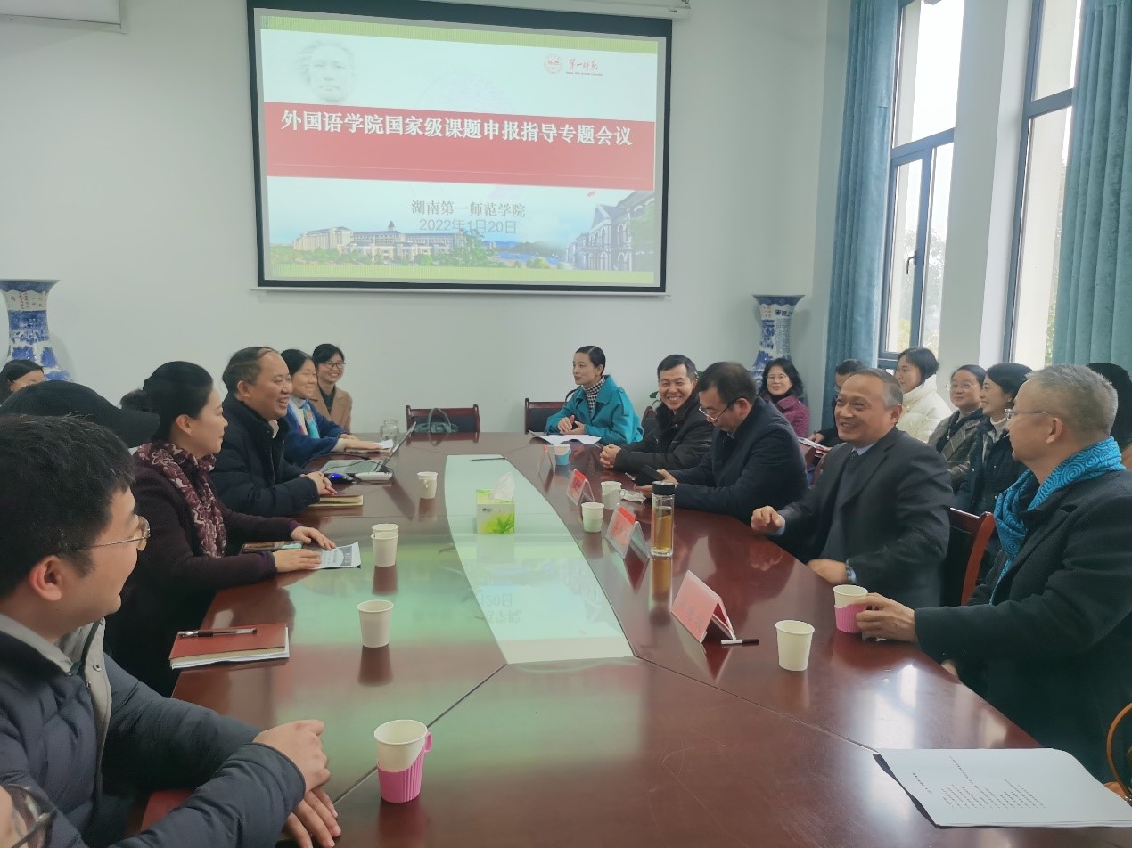为提升2022年度国家社科基金与教育部人文课题申报质量,2022年1月20日下午两点,应萝莉岛 邀请,中南大学李清平、湖南大学刘正光、湖南师范大学余承法等教授来萝莉岛 指导。刘祥清书记、陈圣白副院长、刘宇松副院长、禹晗副书记、萝莉岛 教授、博士与部分科研骨干教师参与了此次指导。会议由康响英副院长主持,陈圣白副院长致欢迎辞。