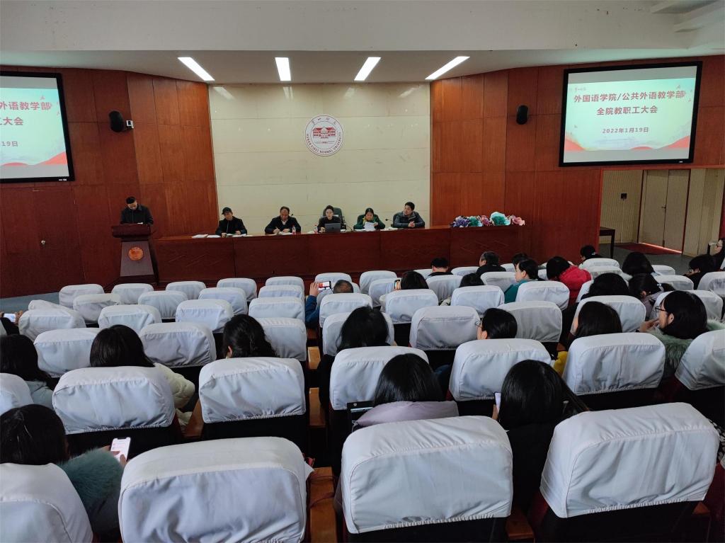 1月19日下午2点,萝莉岛 在特立楼视频会议室召开了全院教职工大会,会议由刘宇松副院长主持。会上,首先主持学院全面工作的陈圣白副院长从教学与人才培养、专业建设、师资队伍建设及学科与科研等方面总结了2021年外院的工作亮点并提出了2022年的工作计划。为了进一步落实学校第二次党代会精神,为了实现外院“全院激活”,陈院长对照2022年学校核心指标还进行了全院动员,希望老师们能从寒假就开始行动起来。