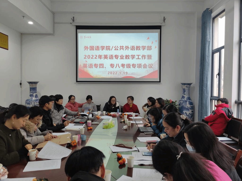 为了提升萝莉岛 英语专业人才培养质量,提高英语专业学生专业四级通过率,助力学生考研,扎实高质量完成学院核心指标,2022年1月19日上午,萝莉岛 /公共外语教学部在百熙楼223召开英语专四迎考研讨会。英语系主任张昀霓、副主任王曼、翻译系主任陈钰、副主任毛晔、教务办廖爱秀老师、综合英语课程组、语音听力课程组、读写课程组、语法课程全体老师参会。会议由副院长刘宇松主持。