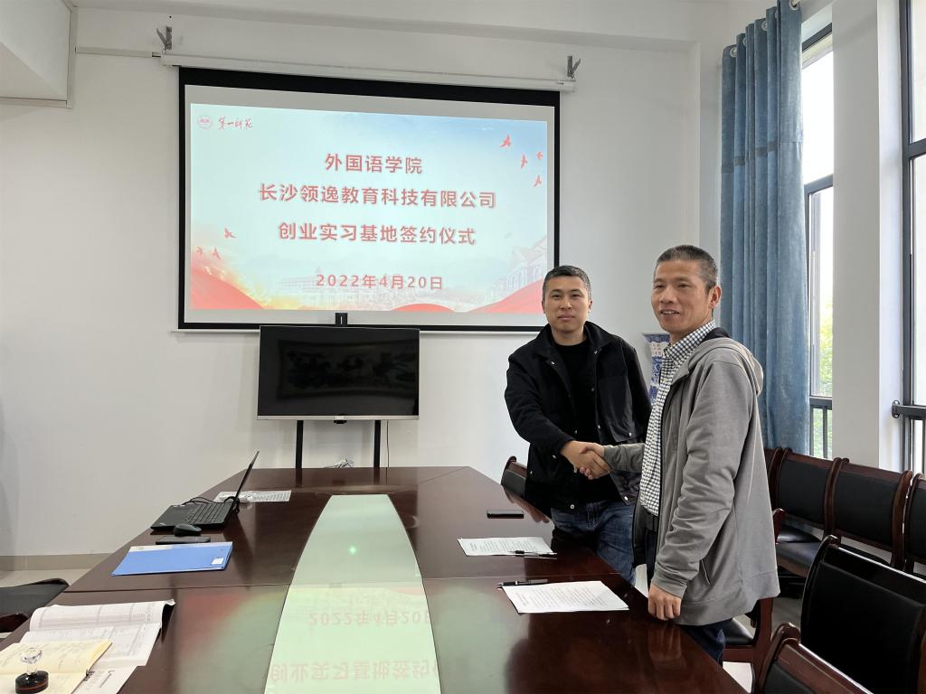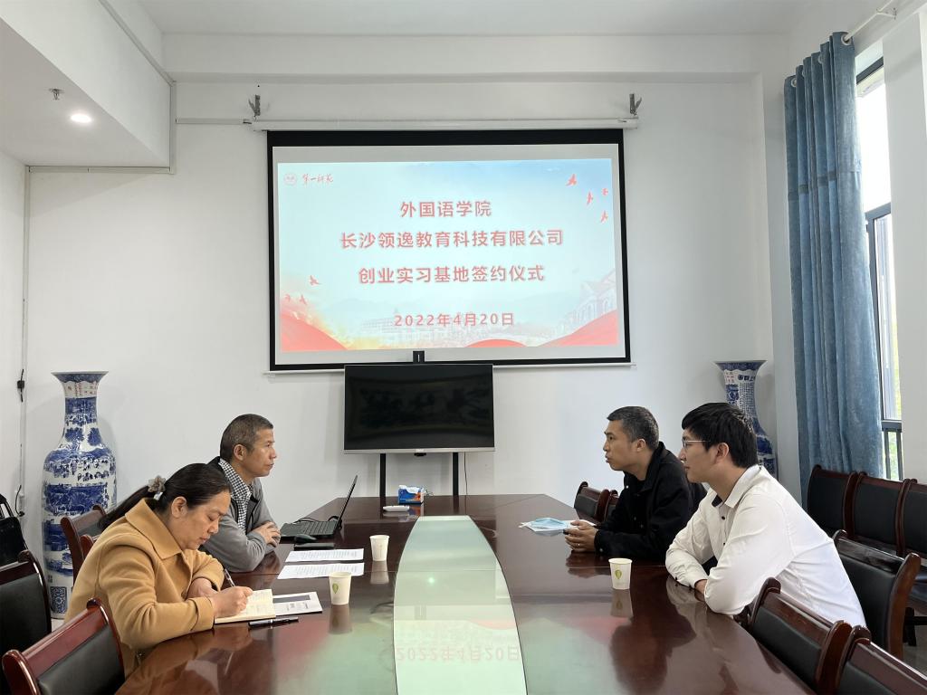 为进一步强化实践教学环节,提高英语非师范专业人才培养质量,深化产教融合,为企业输送高素质的人才,实现专业与产业、企业和岗位对接,4月20日上午,萝莉岛 与长沙领逸教育科技有限公司“创业实习基地”签约仪式在百熙楼223举行。萝莉岛 刘宇松副院长、长沙领逸教育科技有限公司王龙副总等人出席了仪式。