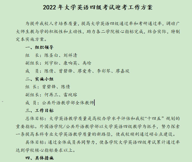 备注:四级迎考联络指导工作督促负责人:陈圣白、刘宇松,负责督促联络指导工作落实落地。