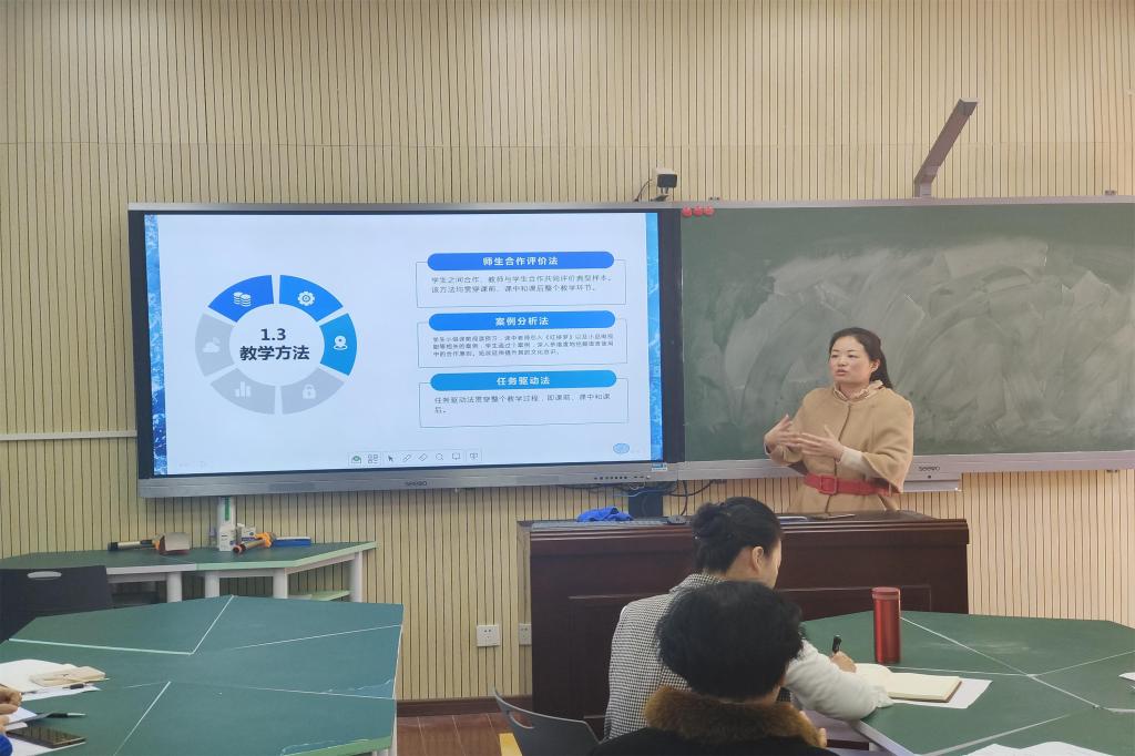 本次说课教研活动以课程思政为导向,内容充实,主讲教师精心准备,精彩粉呈。王婵以翻转课堂为主导,将课程思政融入教学内容,取材巧妙,讲、学、练一体,课堂整体设计流畅,信息化技术运用熟练;蔡军以产出导向理论体系为支撑构建了教学设计,充分体现学用一体、以学生为中心、全人教育的理念,注重培养学生跨文化交流的能力;王小玲教学目标设定清晰,强调体验式教学,要求学生对教学目标心存敬畏,教学设计有理可循,有纲可查;王璜以学生为中心为学生量身制定了教学目标,教学活动与教学目标精准匹配,教学设计前后关联,体现了知识迁移,符合学生认知规律,她生动地将课程思政融入课堂,体现了课堂的高阶性和创新性;唐志敏围绕OBE理论展开了教学设计,将课程思政与课堂有机融合,过渡自然,着重培养学生的文化自信。张丽红立足国际视野,以问题为导向进行教学设计,联系时政进行课程思政,润物无声。经过教指委、院督导评审,推选王婵、蔡军参与学校的示范观摩课展示活动。