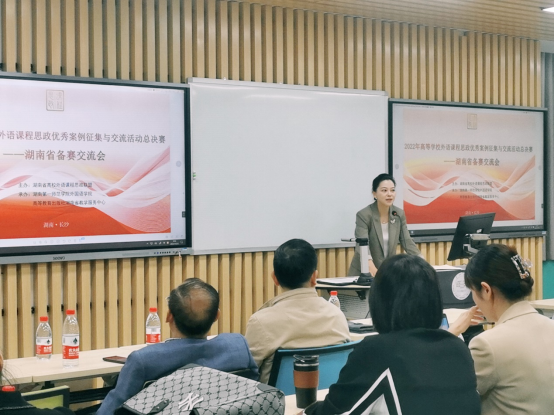 10月22日,湖南省高等学校外语课程思政优秀案例征集与交流活动总决赛——湖南省国赛备赛交流会在萝莉岛 特立楼北102和103多功能教室举行。此次交流会由湖南省高校外语课程思政联盟举办,萝莉岛 和高等教育出版社湖南省教学服务中心承办,中南大学、湖南大学、湖南师范大学、湖南农业大学等10余所长沙高校教师出席,省内其他地区的40余所高校教师参与了线上会议。