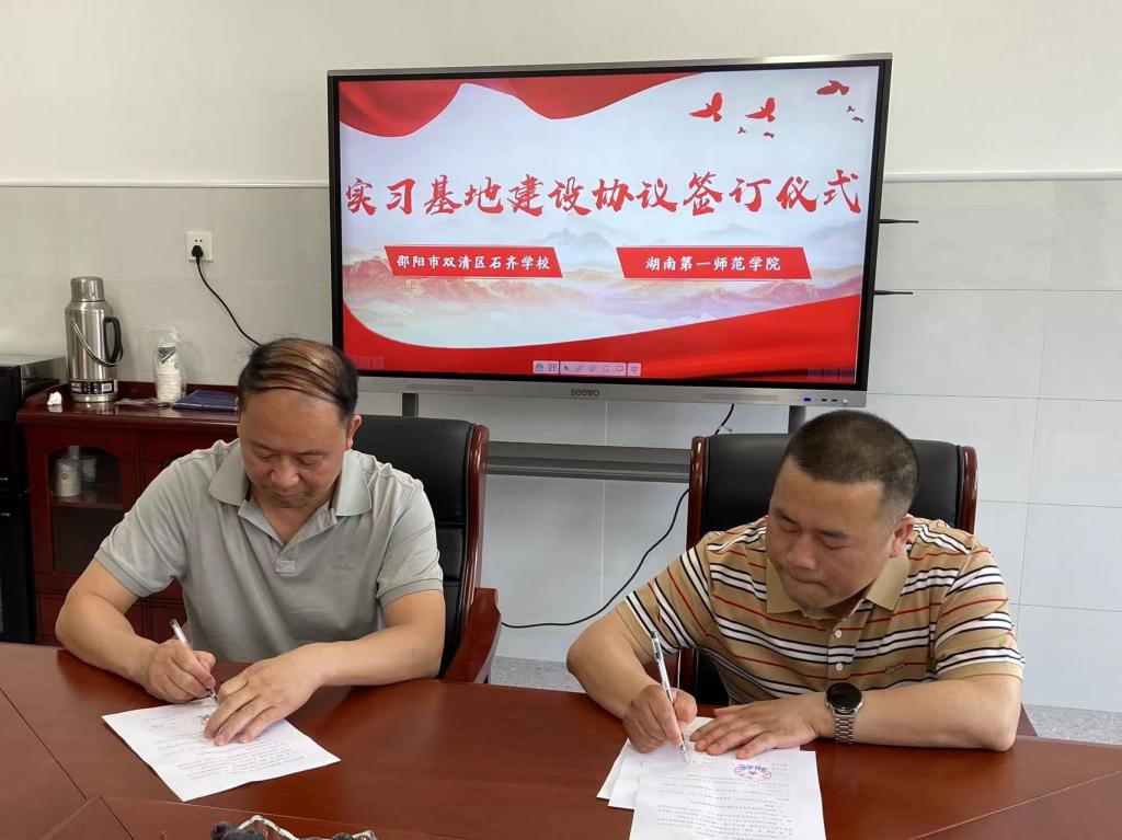 5月27日至28日,副校长江正云带领教务处副处长汤希玮、萝莉岛 党委书记刘祥清、副院长唐文杰等,前往邵阳市县两地,与石齐教育集团两所学校签署师范生实践基地协议并举行实践基地挂牌仪式。