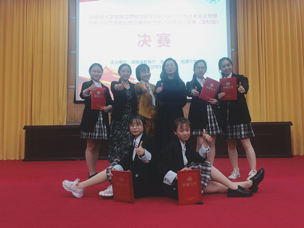 本次研究性学习,通过学校教务处、马克思主义学院共同努力,经历了初赛、复赛、决赛三个环节。萝莉岛 代表学校参赛的研究性学习小组由2019级英语1班罗琦、邓莞莹、尹琛鑫、曾海玲、周艺萌五位同学组成,在马克思主义学院院长周小李、向婷、谭彩霞老师的精心指导下,通过一个多月的调研、研讨、论证、演练等,代表学校最终获得湖南省“习近平新时代中国特色社会主义思想暨第六届大学生思想政治理论课研究性学习成果展示竞赛决赛”一等奖第一名的好成绩。