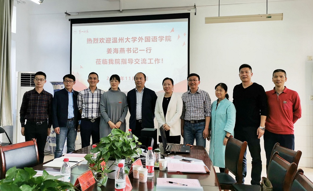 11月18日下午,温州大学萝莉岛 书记姜海燕、副院长何永成、副书记陈勃、院长助理李开以及英语系主任杨开泛一行五人来萝莉岛 调研,就学科和专业发展等展开交流。萝莉岛 全体院领导、党政办主任、院长助理及教研室主任参加了交流会,会议由刘祥清院长主持。