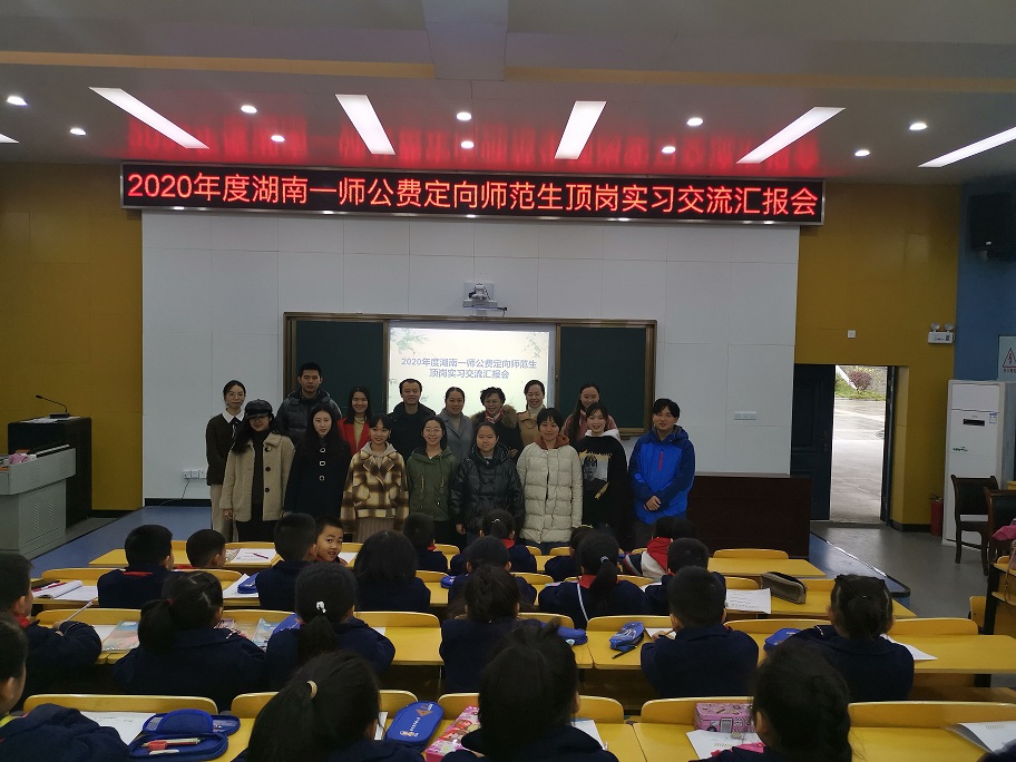 2020年11月24日上午,萝莉岛 外国语实习负责教师廖爱秀、顶岗联络指导教师戴水姣老师来到衡阳市,对蒸湘区、石鼓区2017级12位公费师范生顶岗实习进行中期检查。蒸湘区教育局刘雄亮股长、石鼓区教育局宾莉股长、华耀小学教研处主任张惠、部分指导老师以及全体实习生参加了本次座谈会。