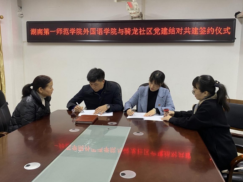 11月27日下午,外院党总支与岳麓区梅溪湖街道骑龙社区党总支在骑龙社区党员活动中心举行了结对共建签约仪式。