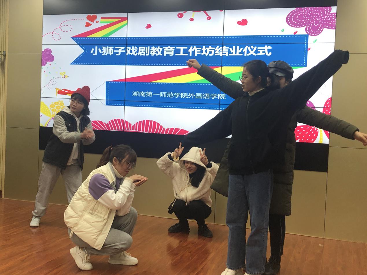 《小狮子教育戏剧工作坊》于2019年12月成立,以社团学习的方式在萝莉岛 正式启动。工作坊由外院廖慧老师主持,邀请了岳麓区李肖蕾名师工作室的名师邓星和陈鑫老师担任工作坊的指导老师,开始教育戏剧的相关培训。