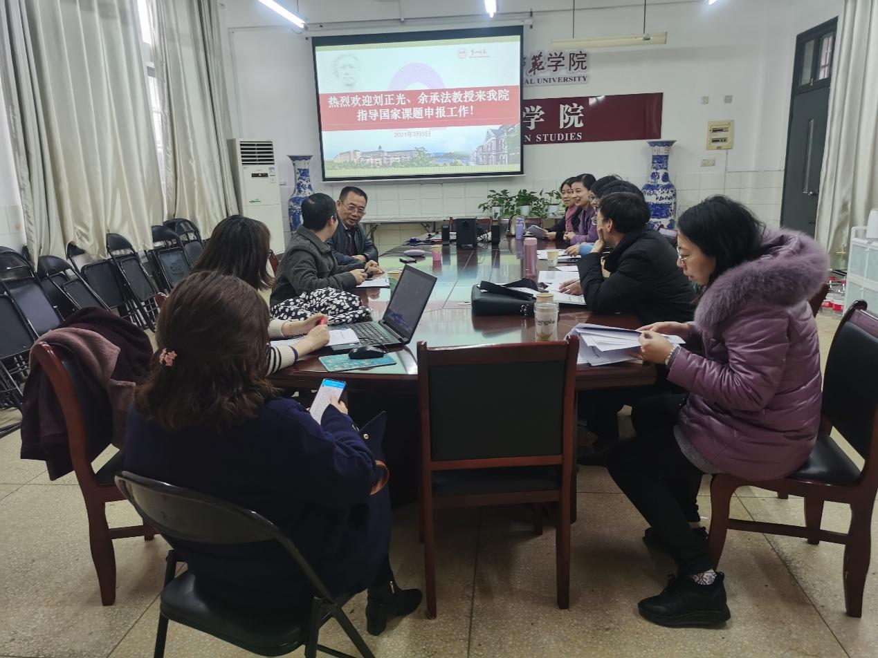 为提升2021年度全国教育科学规划课题与教育部人文课题申报质量,3月9日下午,应萝莉岛 “乐之”论坛邀请,湖南大学刘正光教授、湖南师范大学余承法教授来萝莉岛 指导。会议由康响英副院长主持,萝莉岛 教授、博士,与部分教师参与了此次会议。