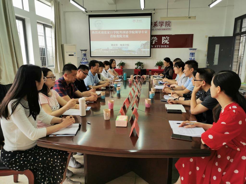 2021年5月13号下午,张家口学院萝莉岛 党总支书记、院长赵海卫、副院长刘文超、办公室主任龚建强、学生工作办公室主任赵倩、翻译学教研室主任贾立强、公共外语教研室主任常杰、教学秘书刘娟、辅导员刘燕燕一行8人来院交流调研。交流会由李亚林书记主持,萝莉岛 党政领导、党政办主任、院长助理及教研室主任参加了交流会。