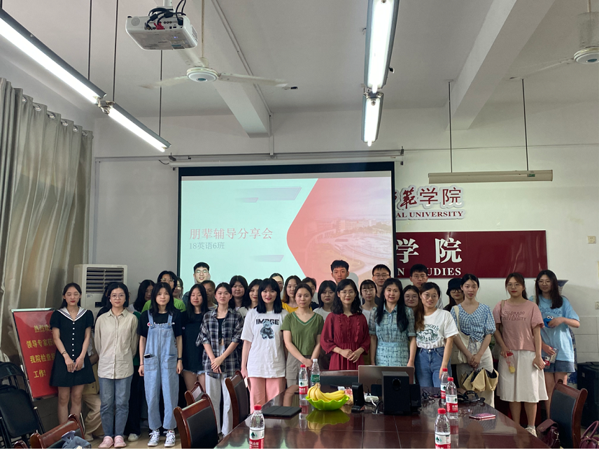 2021年6月2日下午,18英语6班全体同学在外院会议室(怀中北206)举行“朋辈领航,展望未来”辅导交流会。此次交流会由张丽红老师组织。张老师邀请14级外院优秀学子邓续言、17级文传院优秀学子徐舞进行朋辈考研及就业经验分享。萝莉岛 党总支副书记杨虎智莅临指导。