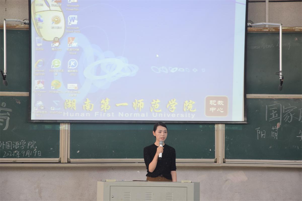 上午11时30分,教科办廖爱秀老师就实践教学、学科竞赛、四六级考试、专四专八考试、普通话考试、教资考试、毕业论文等做了详细讲解。