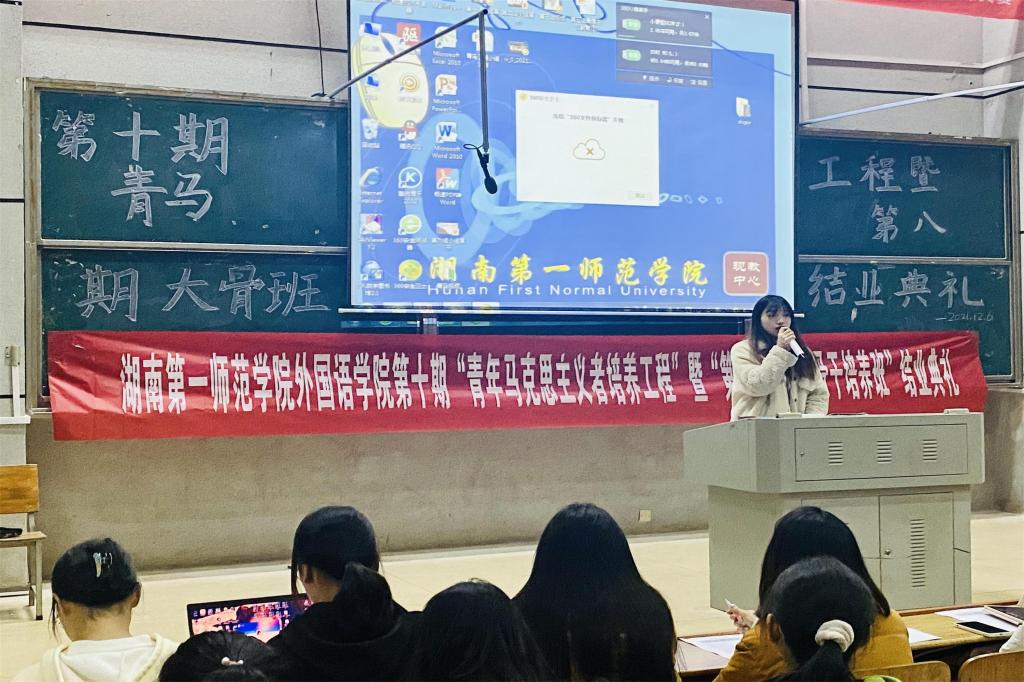 讲话结束后,本次青马培训优秀学员代表黄思璐同学发表结业感言,代表全体学员向参与组织本次青马培训的领导老师致以诚挚感谢,并对全体学员提出了三点希望:一是学习习近平总书记对青年的寄语;二是积极承担自己的责任,以学习为第一要务;三是以实践为第一目的,着力强化学以致用。