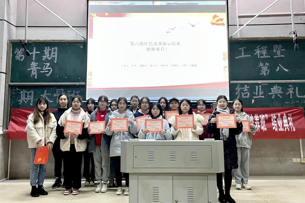 2021年12月6日晚,萝莉岛 第十期青年马克思主义者培养工程暨第八期大学生骨干培养班结业典礼于怀中南110正式举行。院团总支办公室主任刘帅兰、团总支副书记郭卓薇、学生第一党支部纪律委员刘文婷、学生第一党支部青年委员张晓峰、自律督导部宿管分队负责人佘虹锦、团总支办公室副主任李熠炜、团总支办公室副主任谭铭惠作为评委出席此次典礼。