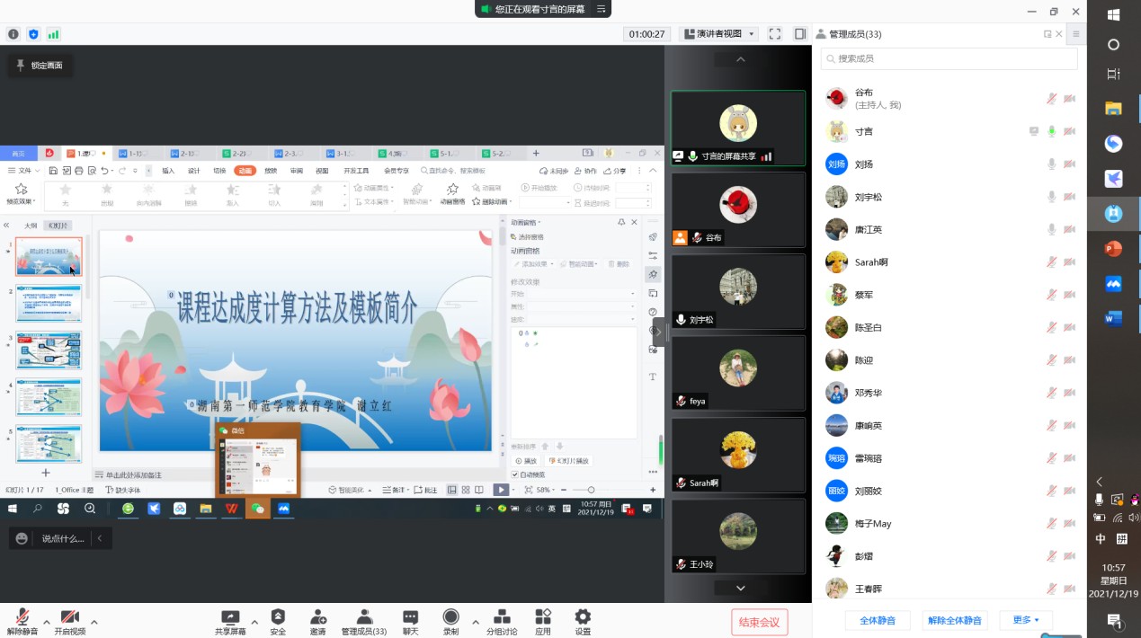2021年12月19日上午10:30,萝莉岛 召开了线上会议,专题研讨课程目标达成度分析。本次会议由刘宇松副院长主持,特邀教育学院资深专家副教授谢立红老师主讲,萝莉岛 陈圣白副院长、康响英副院长、教研室主任、师范专业相关备课组组长参加了本次研讨活动。