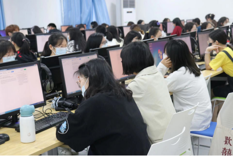 决赛当天,参与英语写作比赛决赛的同学们早早地就来到考场外等待,大家精神焕发,期待着在本次比赛中展现出自己的风采。进入考场后,同学们根据监考老师的指示放置好个人物品,找好位置后通过设备进入比赛系统页面。比赛开始后,教室里安静地只剩下同学们在电脑键盘上敲击作答的声音。每位参赛选手都专心致志,认真地对待本次比赛。上午11点,英语写作比赛决赛正式结束。