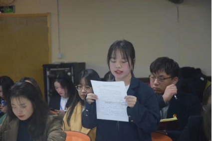 文学与新闻传播学院代表提出要明确定位,发挥表率作用,即作为骨干,要起到模范带头作用,提升影响力和号召力,反映学生诉求;作为引领者,要提高个人素养,思想和行动积极响应习近平总书记的要求;起好纽带作用,作为学生与老师之间的桥梁,要做工作的支持者与践行者 。