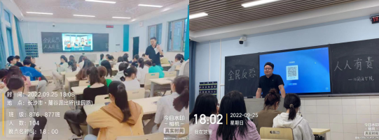 公开课上,全体师生还一起观看了《湖南省实施<中华人民共和国反恐怖主义法>办法》动漫宣传片。宣传片从散装汽油、机动车租赁、二手车交易、旅业租房、互联网服务五个方面向大家详细地介绍了反恐知识。宣传片以青年人喜爱的动漫形式生动展现了现实生活中的反恐案例,有助于提高大学生安全防范意识,增强大学生安全自救与互救能力。