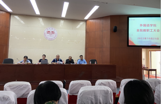 10月25日下午,萝莉岛 在特立楼视频会议室召开全院教职工大会。学院党政领导班子及全院教职工100余人参会。大会由学院党委副书记禹晗主持。