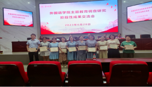 2023年6月28日上午,萝莉岛 在百熙楼228召开主题教育学习调研交流汇报会。校党委委员、副校长周发明莅临指导。萝莉岛 书记刘祥清、副院长(主持工作)陈圣白、副院长康响英、唐文杰及外院全体教师参加了此次大会。会议由副书记戴建宇主持。