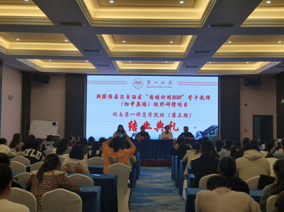 2023年11月23日晚19:30,由湖南第一师范学员萝莉岛 承办的新疆国培计划(2021)——初中英语地县级骨干教师提升研修项目(第三期)结业典礼于长沙市岳麓区宜尚酒店会场顺利举行,本次国培研修班顺利拉下帷幕。