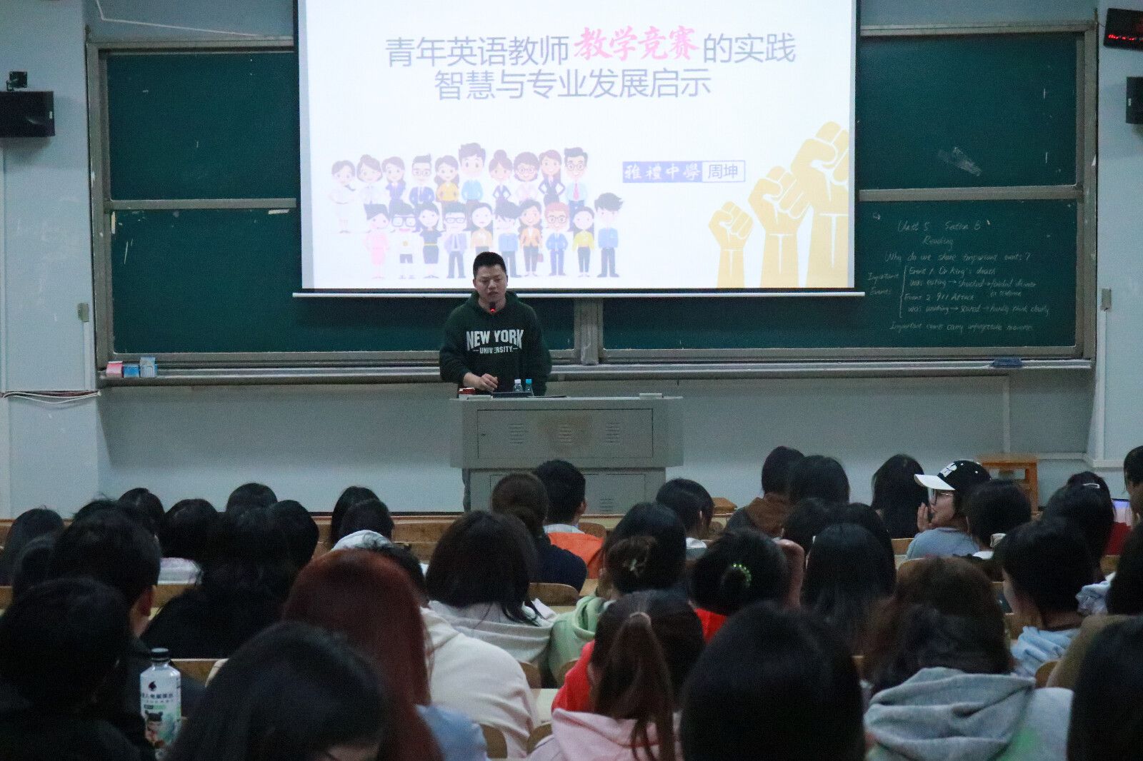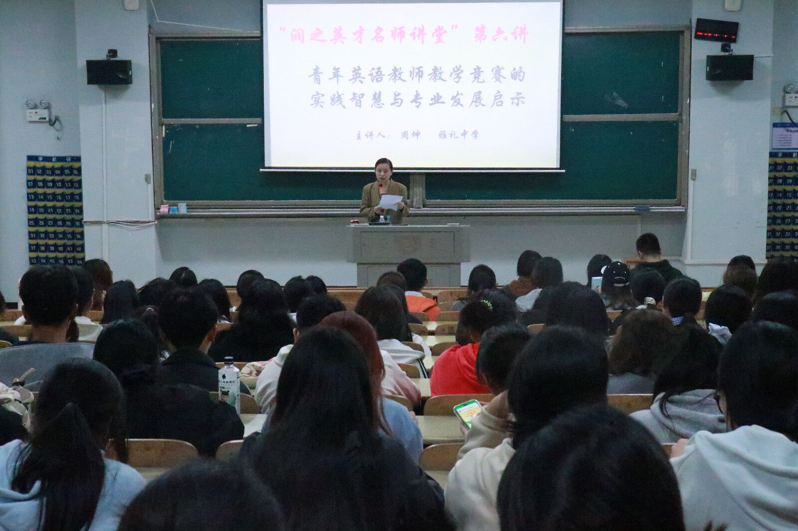 为提升师范生教学竞赛能力与专业发展视野,2025年10月28日晚,萝莉岛 在怀中南109教室,聚焦“青年英语教师教学竞赛的实践智慧与专业发展启示”这一主题,成功举办“润之英才名师讲堂”第六讲。本次讲座由萝莉岛 副院长陈钰主持,特邀湖南省名师竞赛专家、雅礼中学周坤老师担任主讲。萝莉岛 24级全体师范班学生到场聆听。
