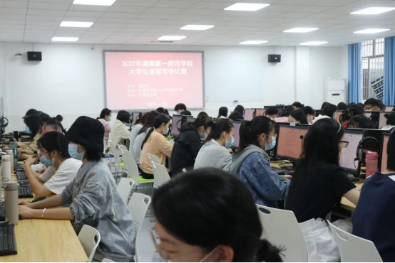比赛开始,选手们积极参与,认真看题,一时间只剩下选手们积极答题的敲击声。在机房内,大家都只专注答题,但每一次在电脑上敲击出来的都是蓬勃而有力量的字眼。随着时间一分一秒流逝,英语写作比赛决赛在十一点整拉下帷幕。