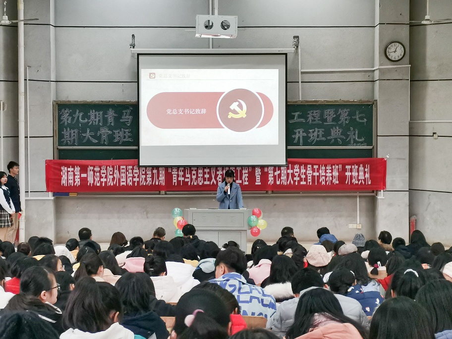2020年11月24号,萝莉岛 在怀中南110教室举行了以“青春勇担当,服务新时代”为主题的第九期“青年马克思主义培养工程”暨“第七期大学生骨干培养班”开班典礼。活动旨在加强萝莉岛 学生干部队伍建设,提高萝莉岛 学生干部的理论水平、战略思维、领导能力和党性修养;同时在学生群体的思想引领工作与文化教育工作上,培养他们树立自己的人生理想,面对阻碍迎难而上,勇于担当的精神品质。参加此次培训人员共175人,党总支书记李亚林、党总支副书记杨虎智、团总支书记张明、学工办主任陈阳老师以及全体辅导员受邀出席典礼。