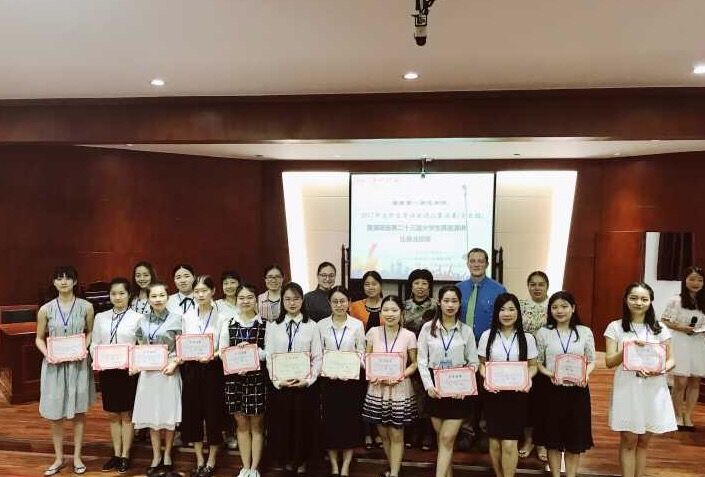 2017年5月20日上午9:00,萝莉岛 2017年英语演讲比赛专业组决赛暨湖南省第二十三届大学生英语演讲比赛专业组选拔赛在科技楼模拟法庭成功举办。此次比赛由教务处主办,萝莉岛 承办。出席本次活动的领导有现代教育技术中心处长朱承学、教务处副处长李建亚和萝莉岛 副院长康响英。担任此次评委的有外院康院长、外教Brandon以及4位专业教师。