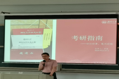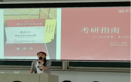 为给萝莉岛 考研的学子们提供更多指导,增进同学们对研究生入学考试的认识,5月21日下午,萝莉岛 邀请2021届毕业生罗娆和2024届毕业生彭伊帆在怀中南208教室作考研专题讲座。本次讲座由学院党委副书记戴建宇主持。