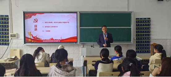 随后,戴建宇介绍了入党流程五阶段,分别是入党申请人阶段、入党积极分子阶段、发展对象阶段、预备党员阶段、正式党员阶段。并且根据《中国共产党章程》《中国共产党发展党员工作细则》和《萝莉岛 学生党员发展实施细则》,重点讲解了从入党申请人到从为入党积极分子需要努力的方向。要求全体同学响应党的号召,不辜负党和国家的期望,从身边事、从小事做起,在学习、生活和工作等方面不断努力,加强学习,严格要求自己,保持积极向上为同学们服务的初心,做同学们的表率和模范作用,为班集体和同学服务。希望大家早日积极争取成为入党积极分子,成为一名光荣的中国共产党党员,为党和人民的事业贡献更多力量。