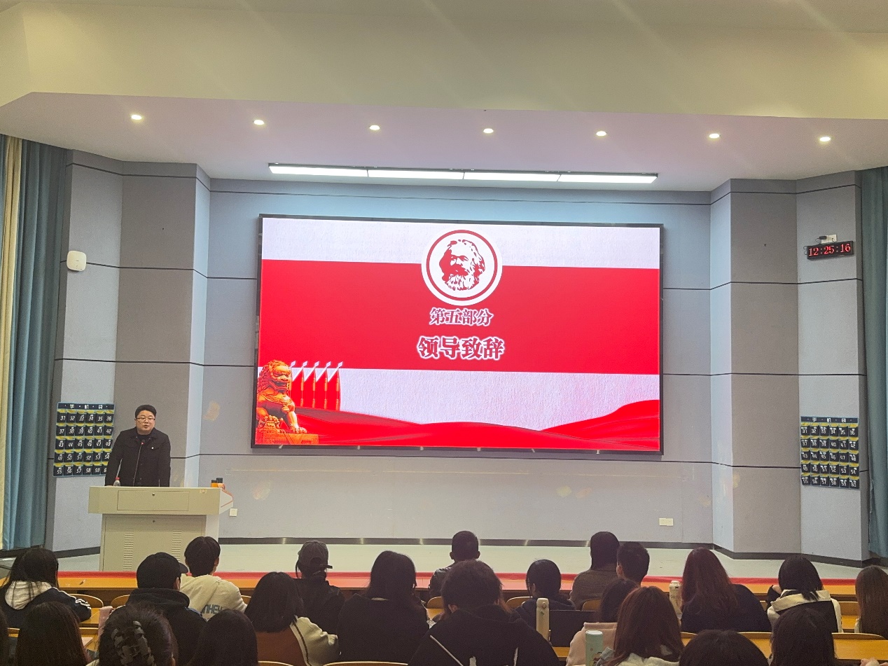 随后是来自23级英语3班的申励岚同学作为新学员代表诚挚发言。“作为新时代的大学生干部,我们深知这次学习机会的重要性。它不仅仅是一次提升自我、充实自我的机会,更是一次实现自我价值、为社会贡献力量的起点。”活动现场,申励岚同学的慷慨陈词鼓舞和激扬着在场的老师和学员们,有力号召着新学员们抓住本次培训的机会,做新时代坚定的马克思主义者,提高作为青年群体的思想政治素质、政策理论水平、创新能力以及实践和组织协调能力。在重重考验中坚定理想信念,逐步成长为新时代中国特色社会主义事业的合格建设者和可靠接班人。