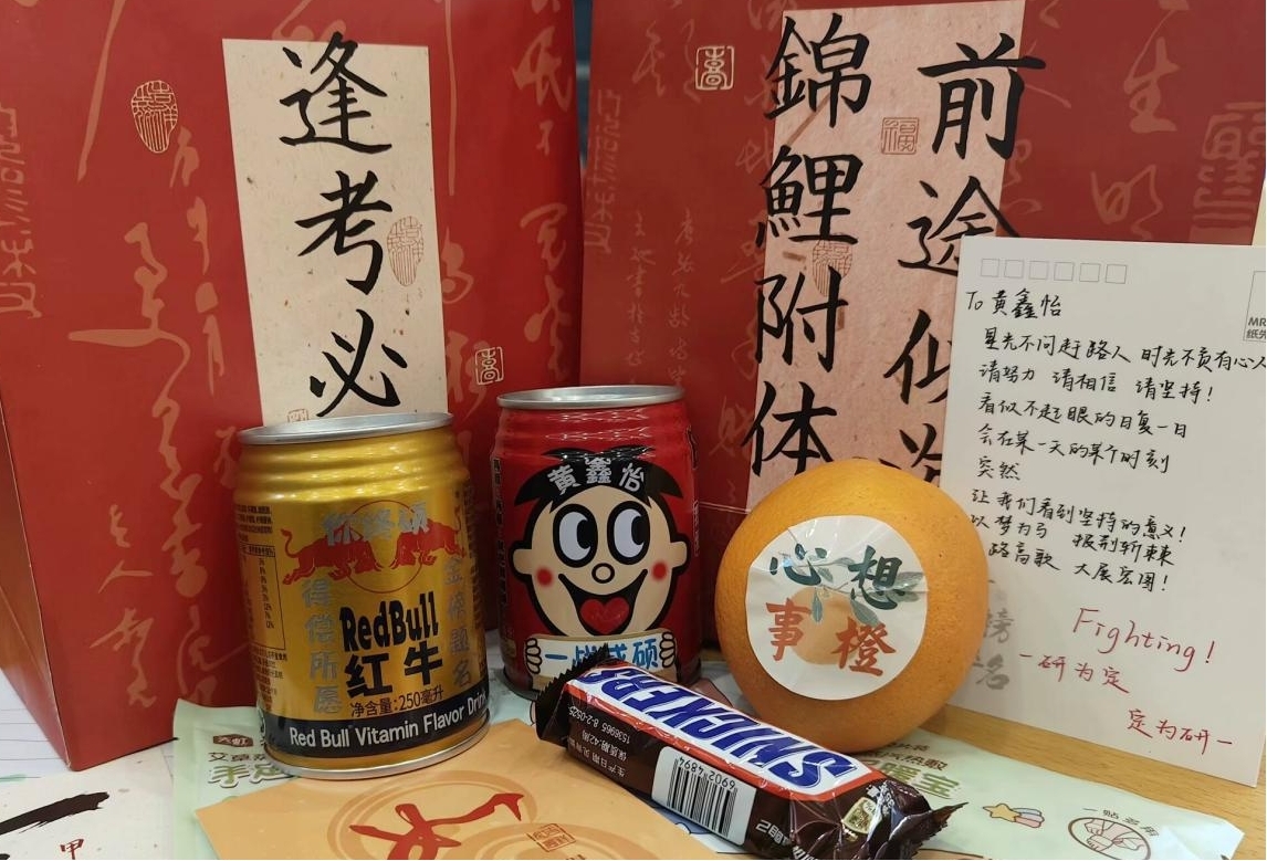 为了进一步表达学院对考研学生的关心和支持,领导老师们为考研学子们发放了考研礼包,礼包里有橙子、牛奶、红牛、暖宝宝、蒸汽眼罩及学妹学弟手写的祝福卡片。这些礼品表达了萝莉岛 对考研学子的人文关怀及鼓舞激励。祝福萝莉岛 考研学子上岸成功、金榜题名!
