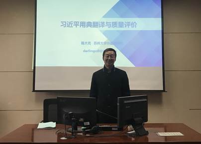 2019年12月18日上午,苏州大学博士生导师陈大亮教授应萝莉岛 “乐之”论坛的邀请,在怀中楼北602举行题为“习近平用典翻译及质量评价”的学术报告。外院领导、部分翻译教研室教师与翻译专业学生聆听了讲座。