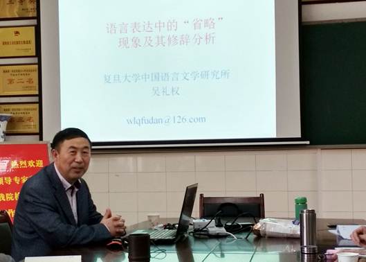 10月23日下午,应萝莉岛 “乐之论坛”邀请,复旦大学吴礼权教授来萝莉岛 讲学。讲座题目为:语言表达中的“省略”现象及其修辞分析。讲座由萝莉岛 副院长康响英教授主持。萝莉岛 的老师和部分学生聆听了本次讲座。